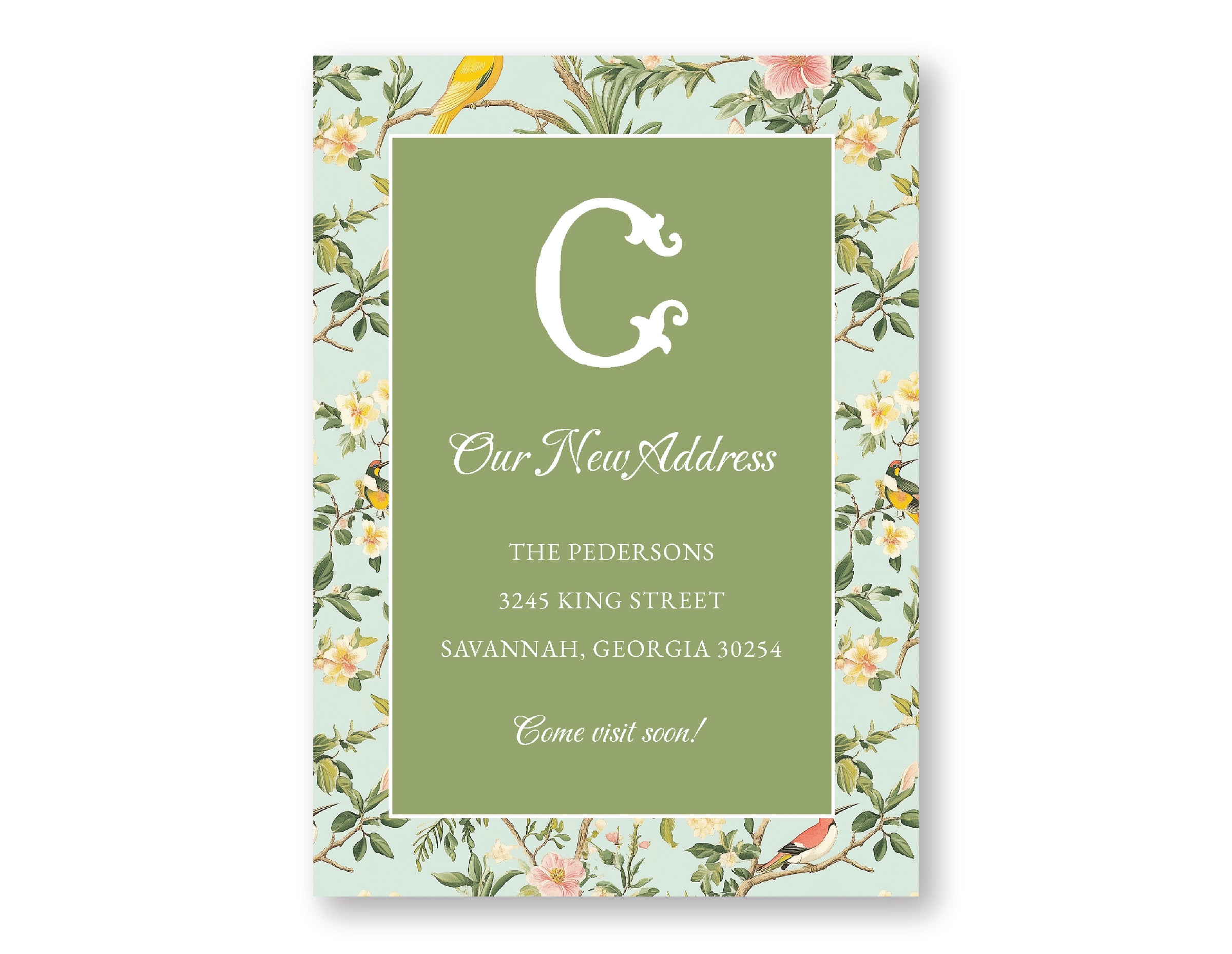 Celadon Songbirds Change of Address Cards, set of 24