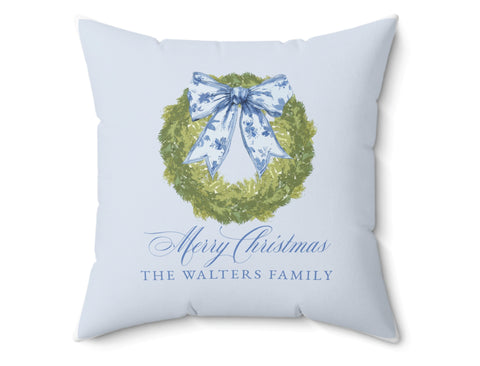 Tartan Bow Wreath Personalized Pillow